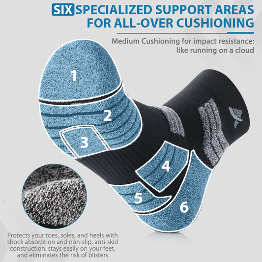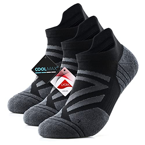 Ankle Athletic Running Sports Low Cut Tab Socks Coolmax Moisture Wicking Seamless 3Pairs (Ankle-Black Grey, Small)