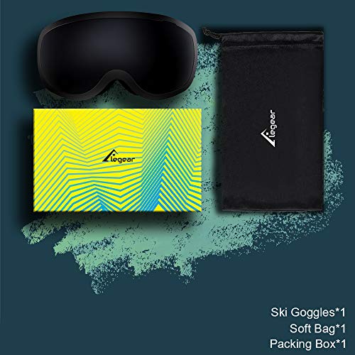 Elegear Skibrille Damen Herren Ski Goggles Snowboardbrille Anti-Fog 100% UV400 Schutz Verspiegelt Schneebrille Helmkompatible Skibrille für Snowboard Skifahren - Schwarz
