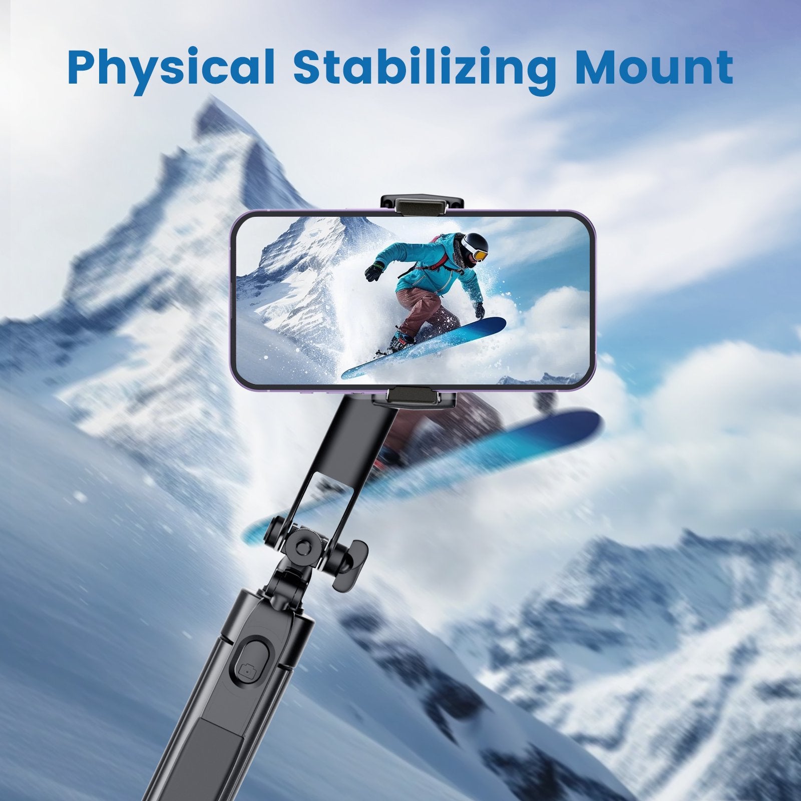 67" Selfie Stick Tripod, 360°Rotation Anti-shake Gimbal Extendable Phone Tripod with Remote and Light, Solidest Cell Phone Tripod Compatible with iPhone/Android